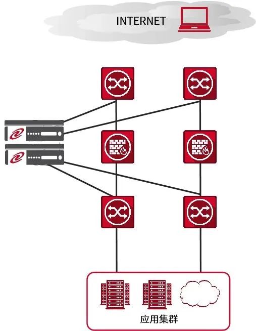 由于用戶數據中心已經部署完畢,所以負載均衡設備旁路模式部署,拓撲圖如下:
